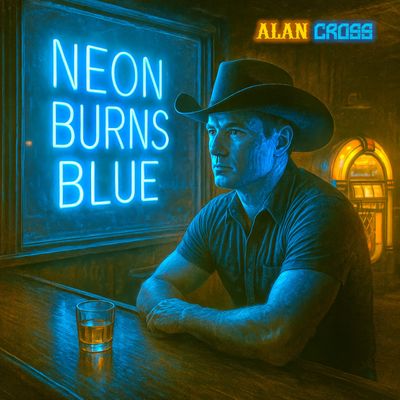 I’m sittin’ here watchin’ while the neon burns blue